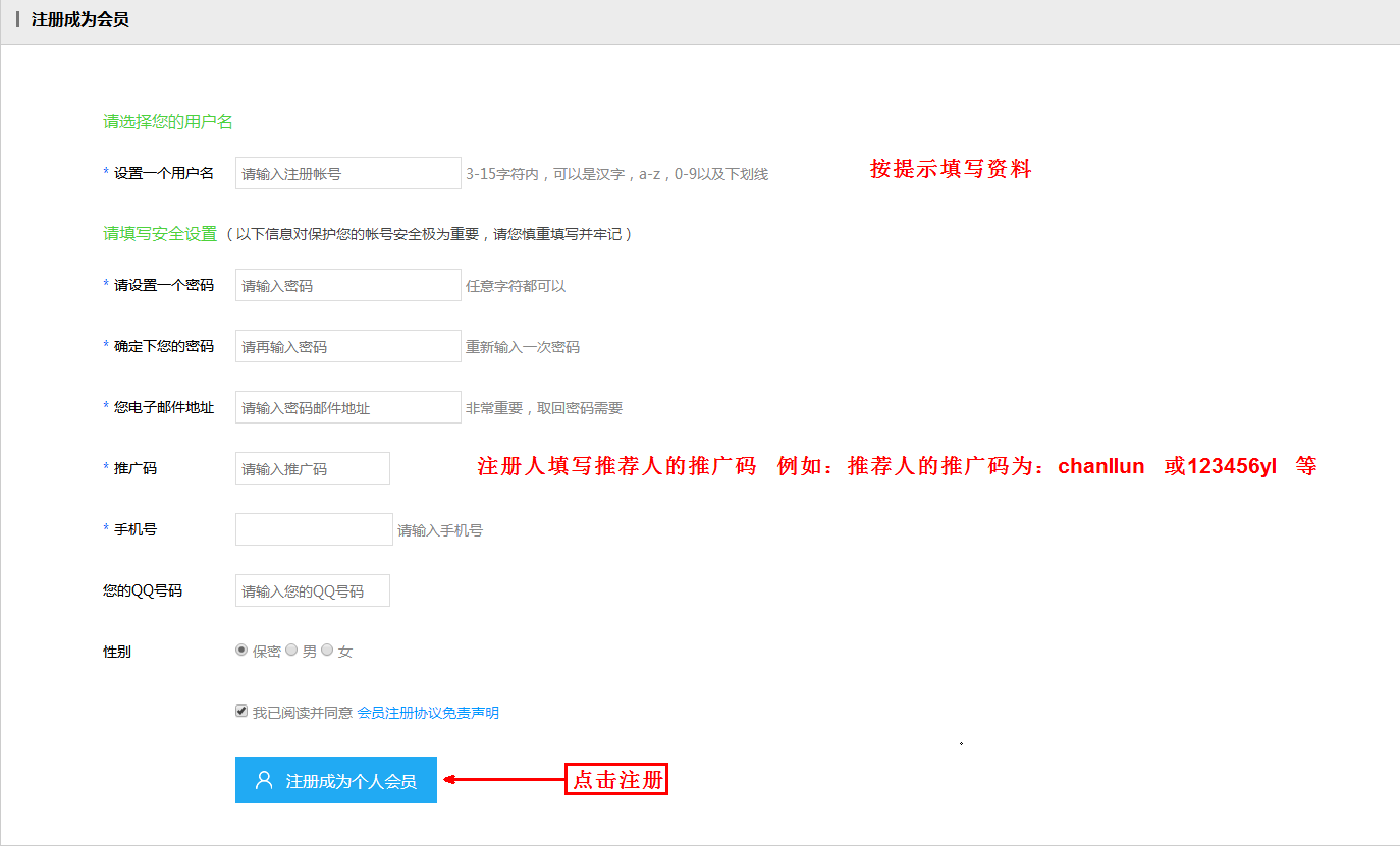 二、需先注册成为会员,不是注册会员不可以购买,也不能做推广。注册会员流程如上。