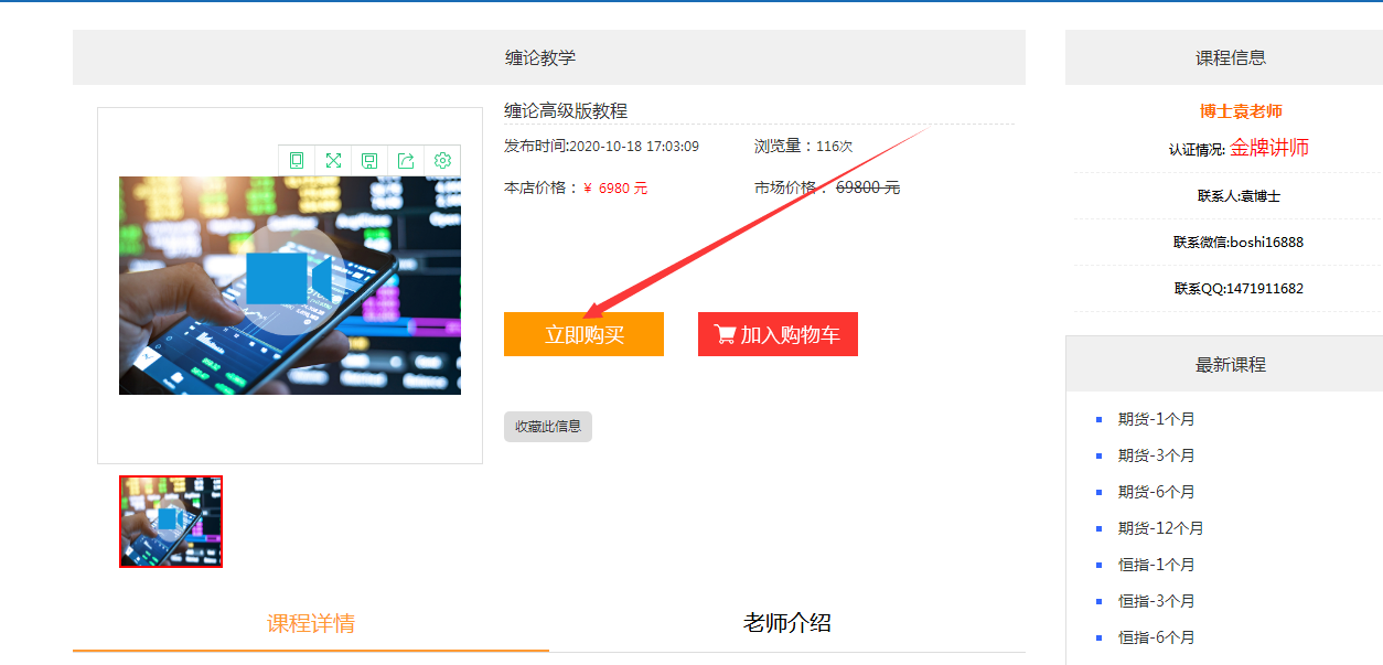 五、在页面里,点击“缠论课程”就可以去观看了。