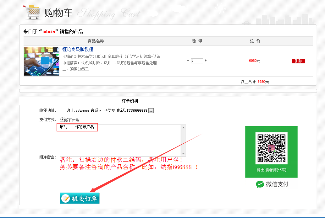 四、凡购买学习权限时,必须在备注栏里填写自己的会员名,会员名是唯一识别码,后台会匹配会员权限。